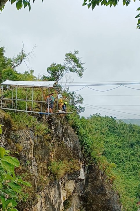 The climax of our Bohol trip in terms of adrenaline rush happened rather early, just on our second day. Ran and I agreed that we would not consume much for breakfast, hence we just settled for microwaveable breakfasts from a convenience store. As much as possible, we need to have almost empty stomachs when we do our first activity: to take a 75-meter free fall swing situated at 200 meters above the ground.