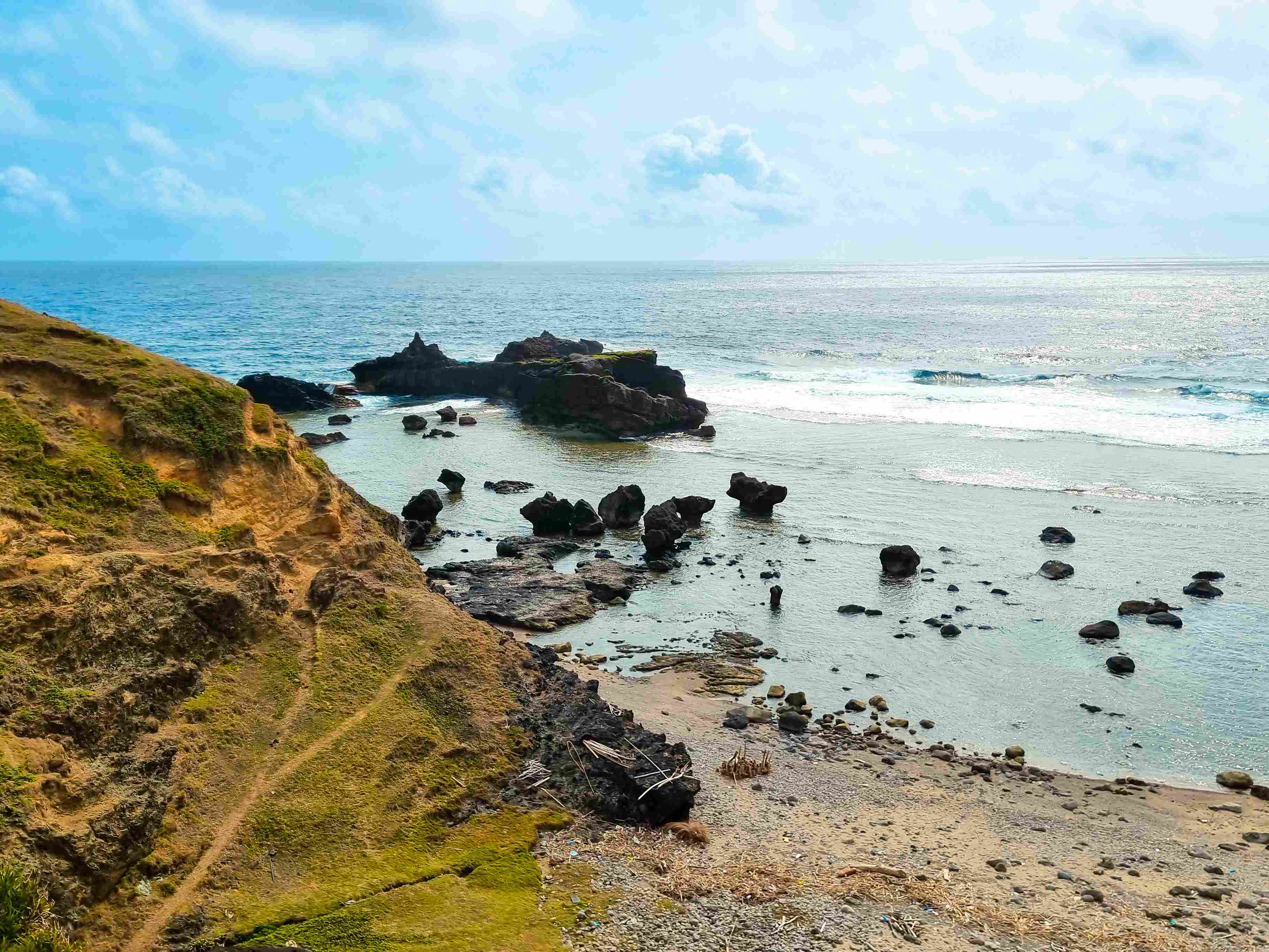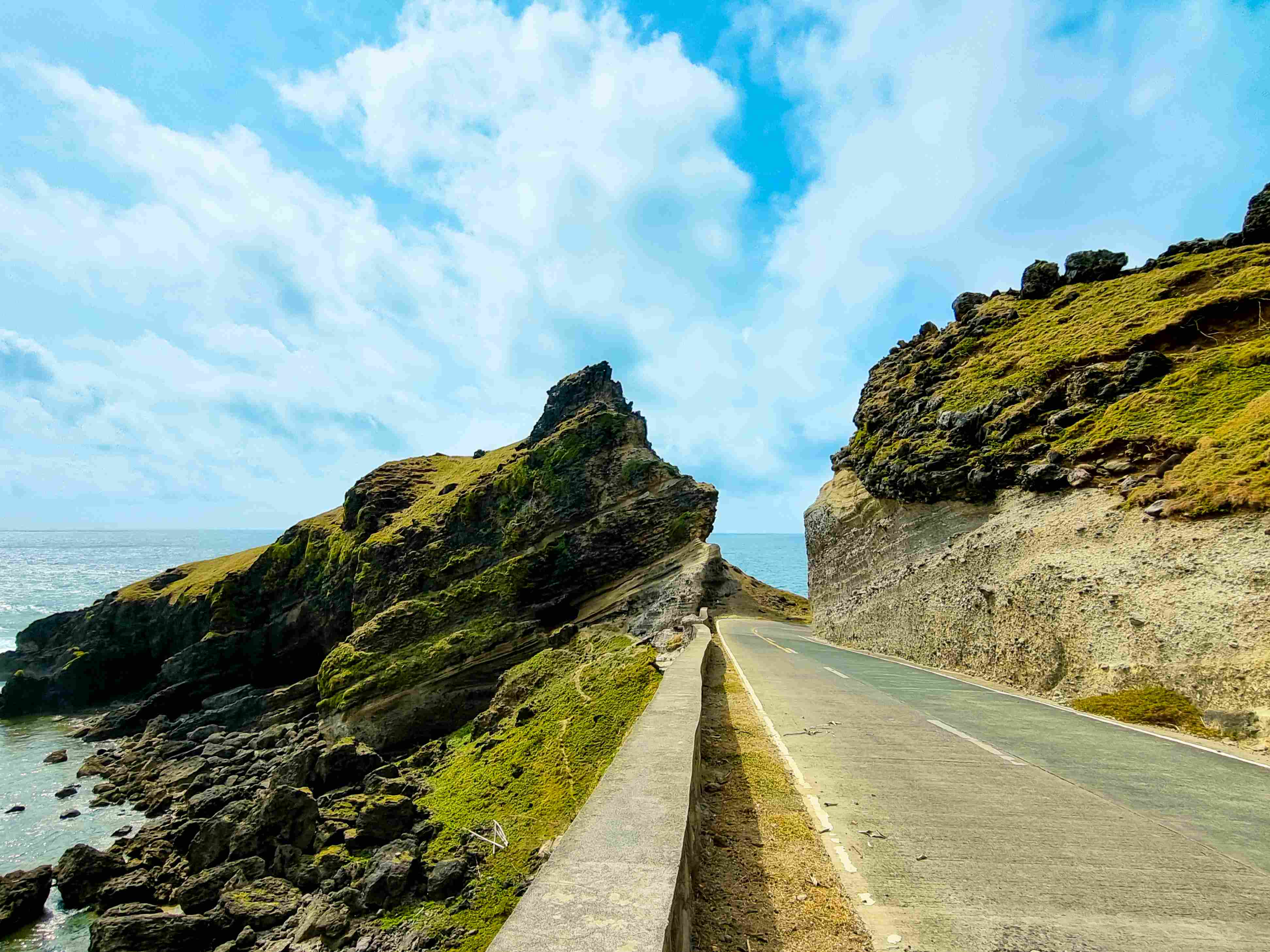 Alapad Rock Formation was formed by the constant crushing of the sea and tectonic movement, and in the course of time, grass eventually grew on its surface giving it its verdant hue. Its location likewise provides a magnificent view of the vastness of the Pacific Ocean where strong currents of wind come from, further contributing to the weathering of the rock formation. Add to that the fascinating view of the road cutting across the rock and what one gets is nothing short of a picturesque landscape.