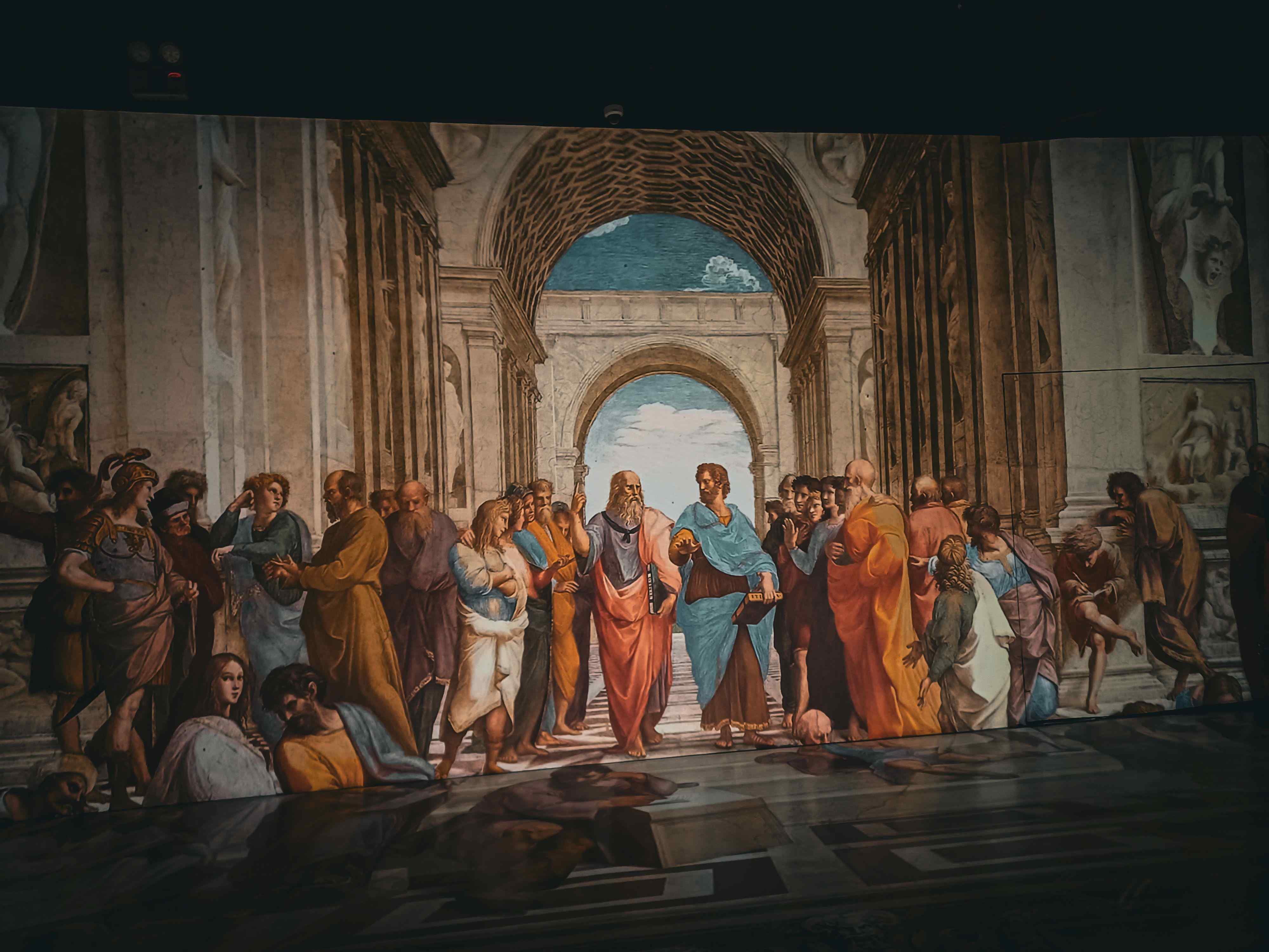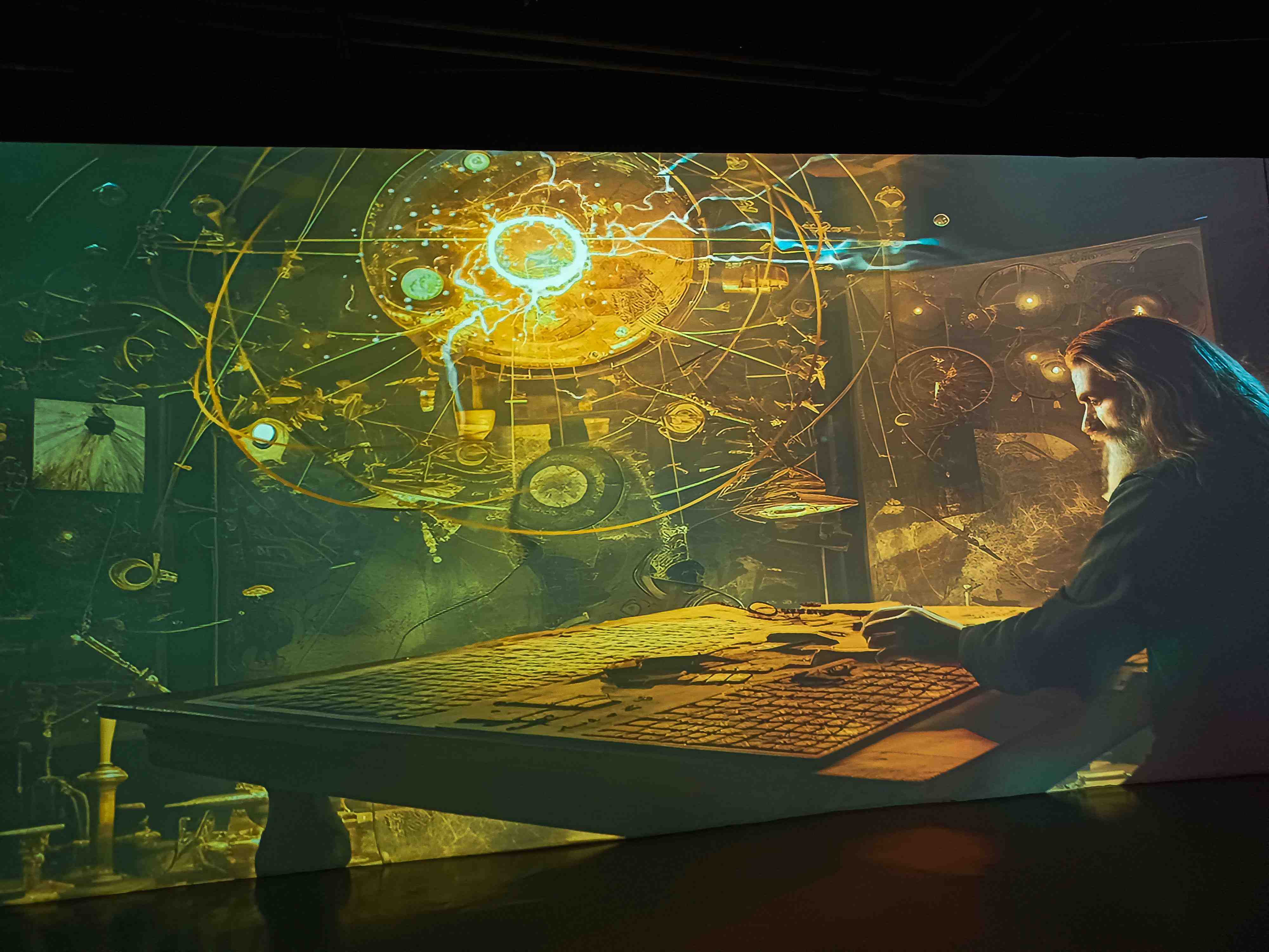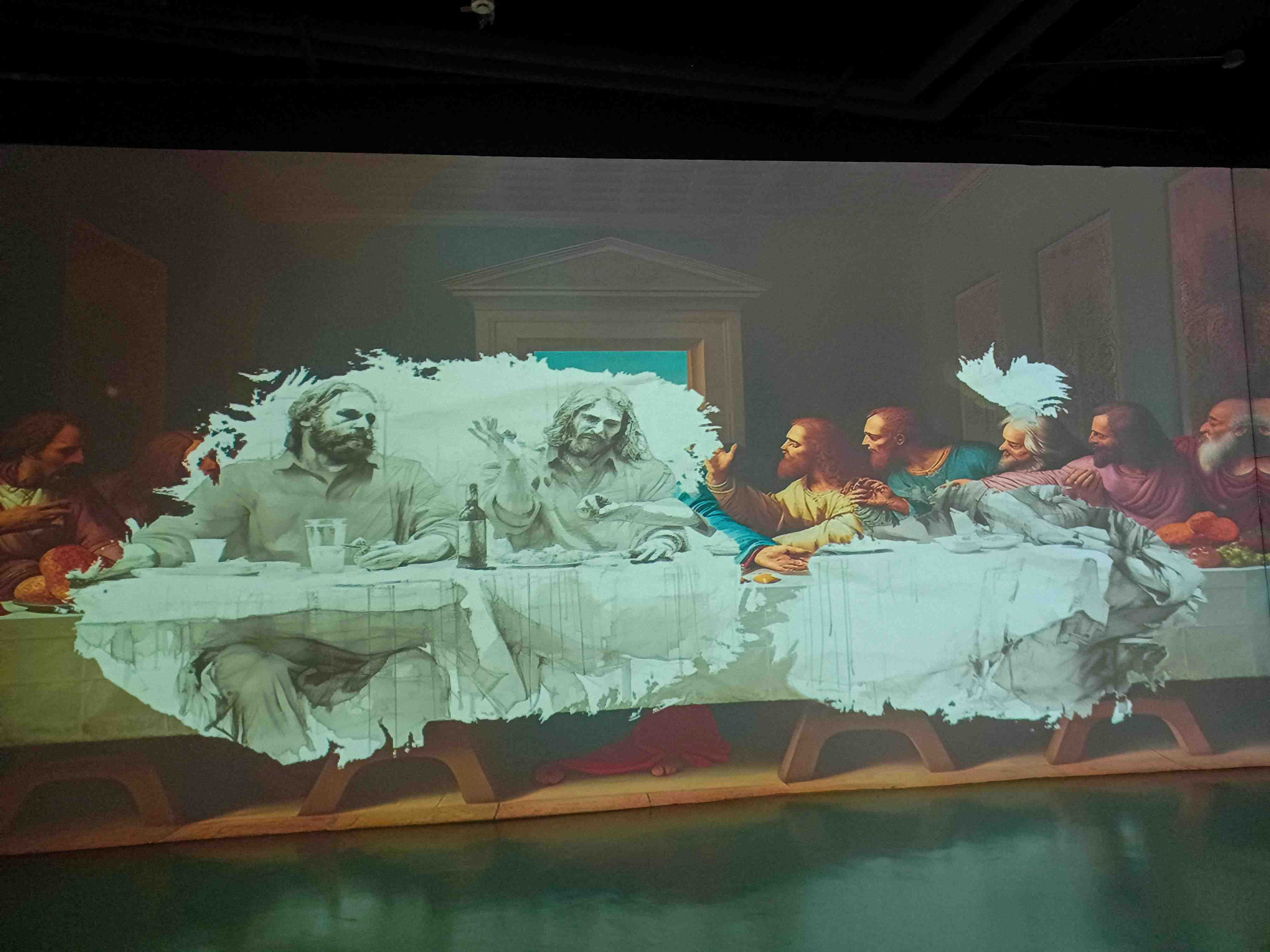 The main attraction featured the artworks of Leonardo, the brushstrokes from which were the ones used by AI to generate the patterns of the streaking lights of shapes and colors projected in 3D. It also featured Leonardo’s invention sketches, alongside with the works of other giants in the arts, like Michelangelo, Raphael and Van Gogh, among others.