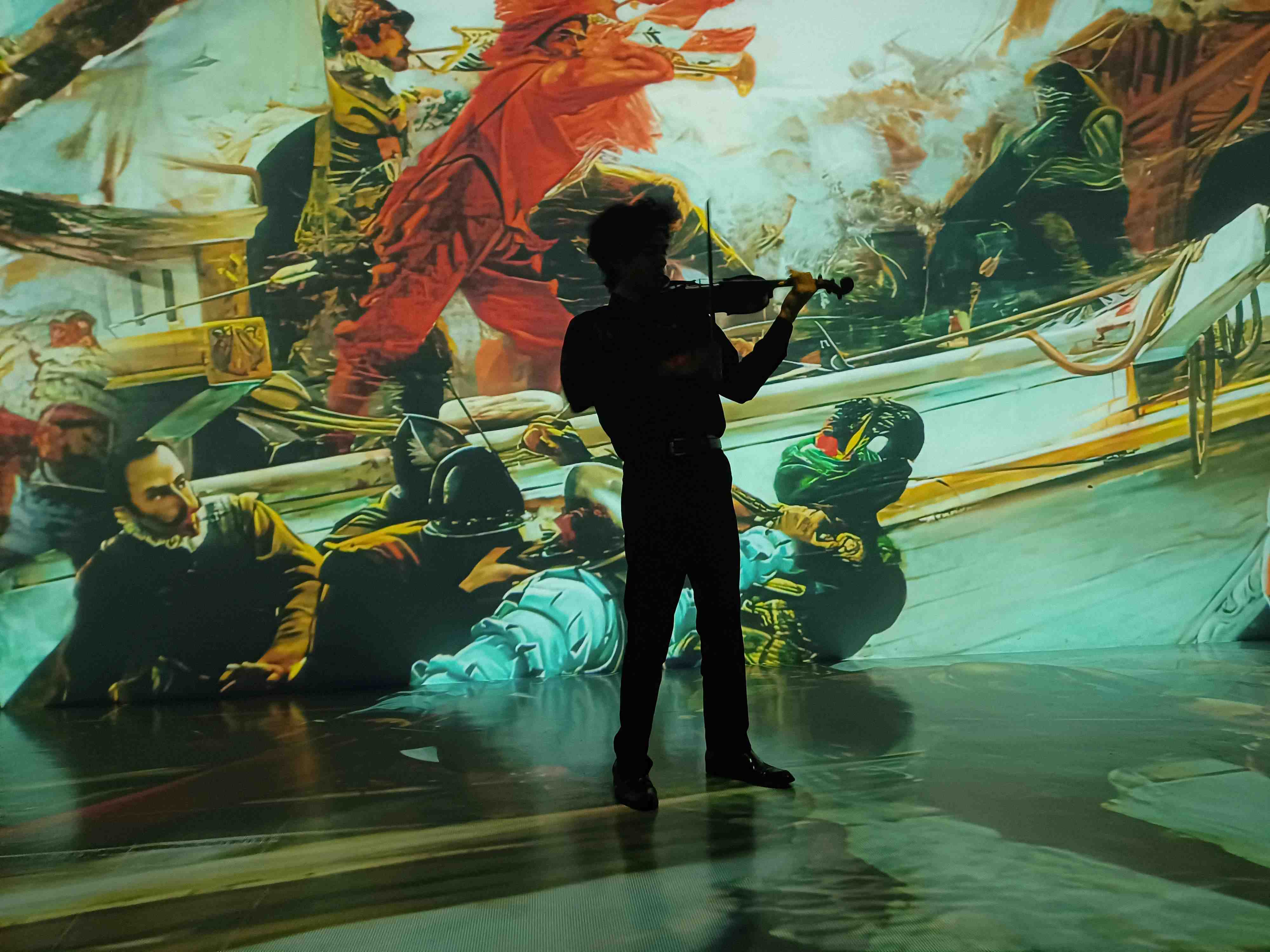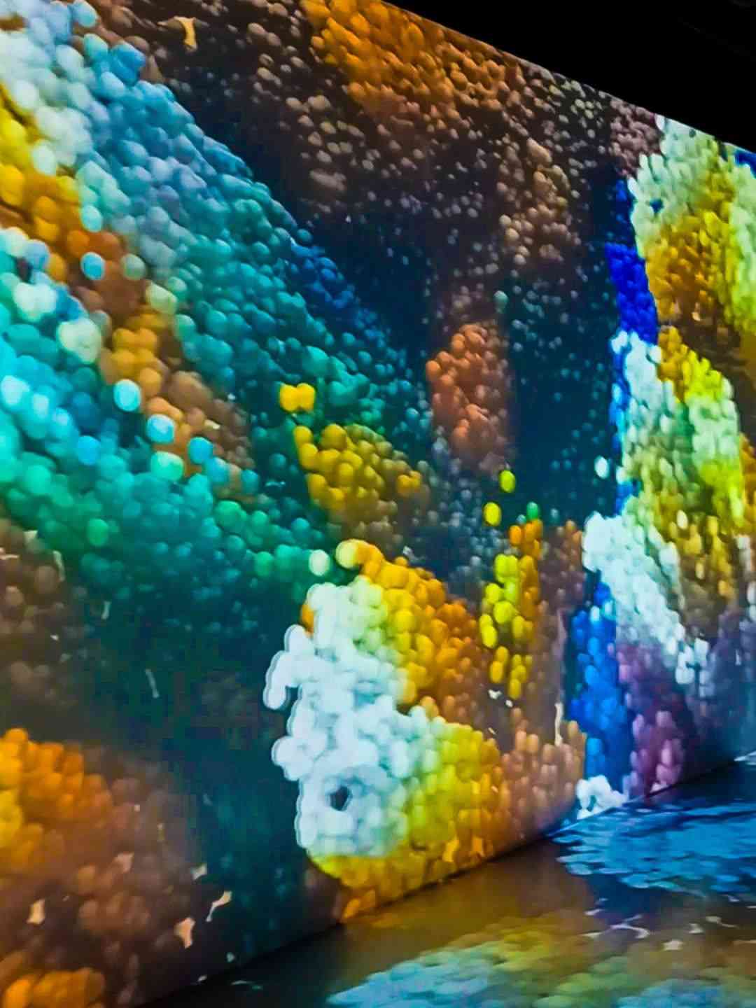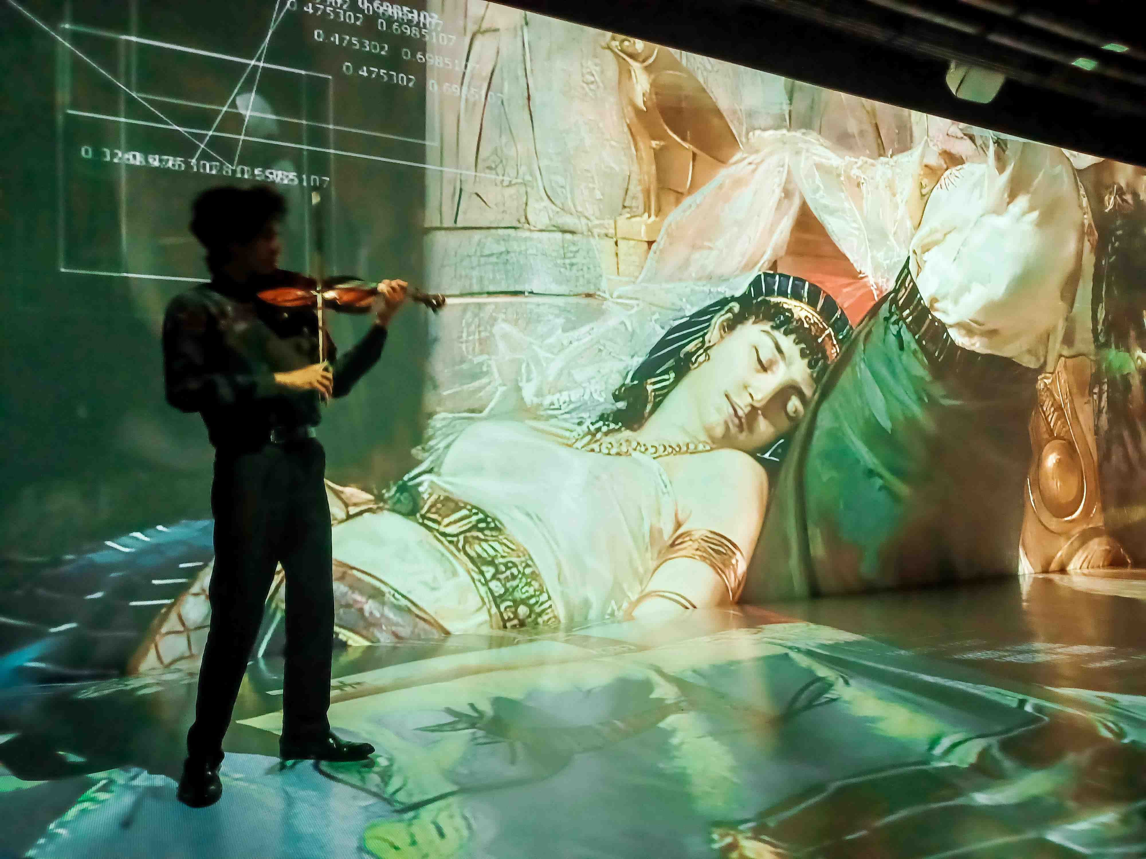 There were four parts in the Digital Garden of Dreams. One was inspired by Leonardo’s study of the human body in what seemed to be a harmoniously choreographed representation of cells. There was then an exploration of space, reminiscent of Leonardo’s contributions in the field of astronomy. The third part was the most experiential, to say the least, focusing on the visual representation of music and harmony, with a live violinist playing while projections are shown. Finally, there was a homage to Filipino artists, showing art pieces from the portfolio of Juan Luna, though I unfortunately was not able to take photos of the last one as I got absorbed by the experience.