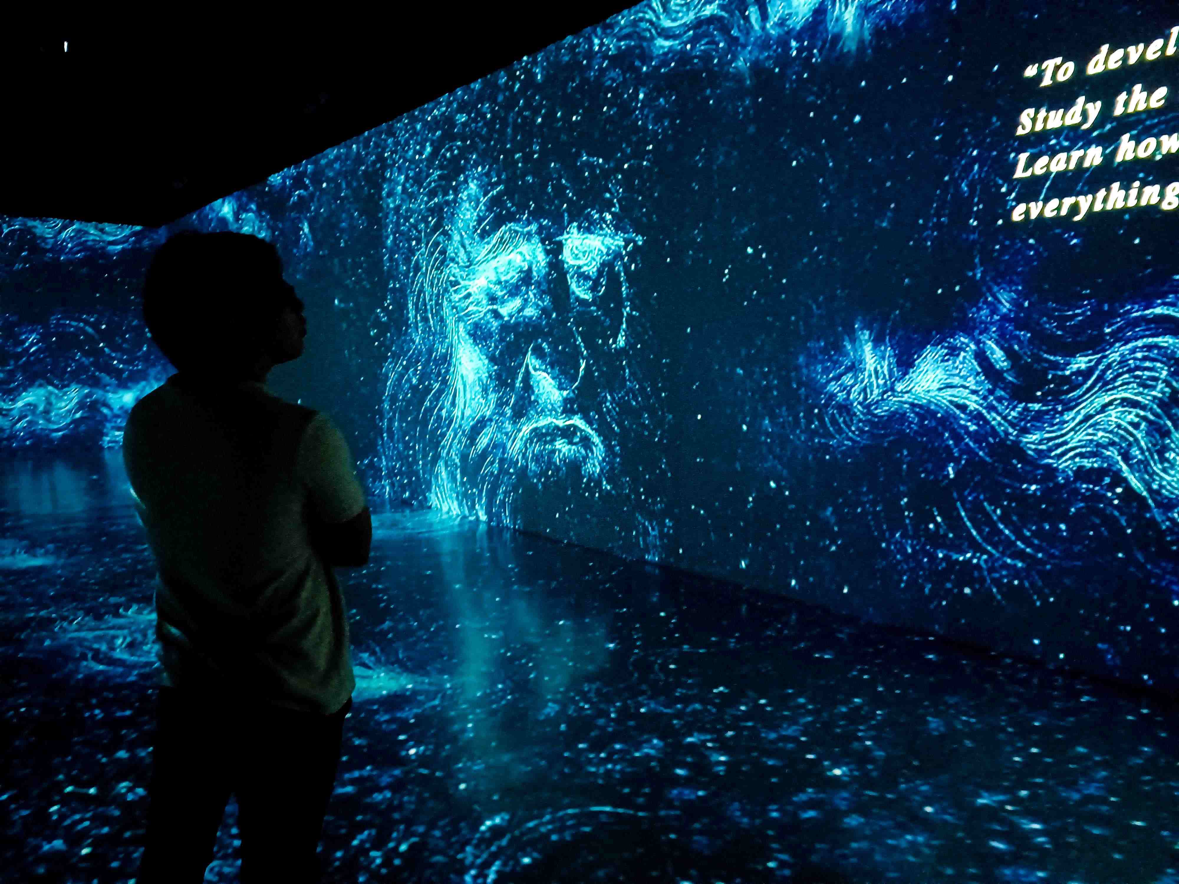 A few minutes more and the show has begun. A three-dimensional audio-visual kickstarted the immersive show, giving a background on Leonardo da Vinci’s life and genius. In keeping with the theme of arts and science, the Curator’s Lobby likewise featured works of other scientists and artists, including Filipino ones.