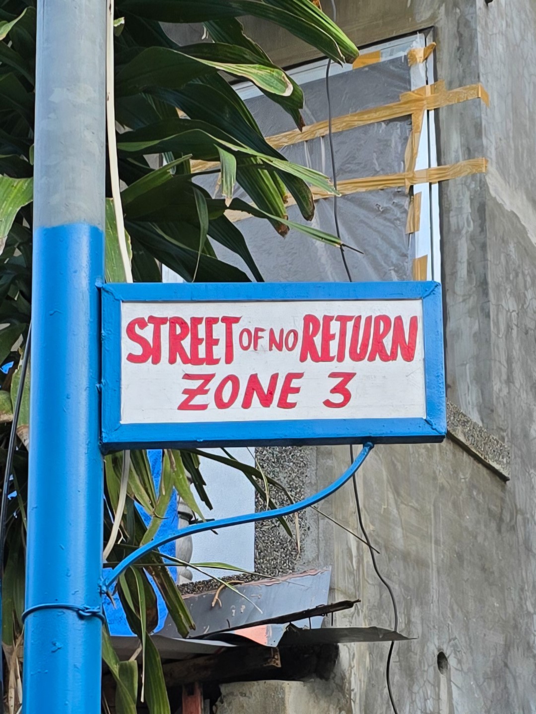 When we were done with our exploration, we saw an interesting and rather humorous street sign. Turned our, the shrine is located at the end of Street of No Return.