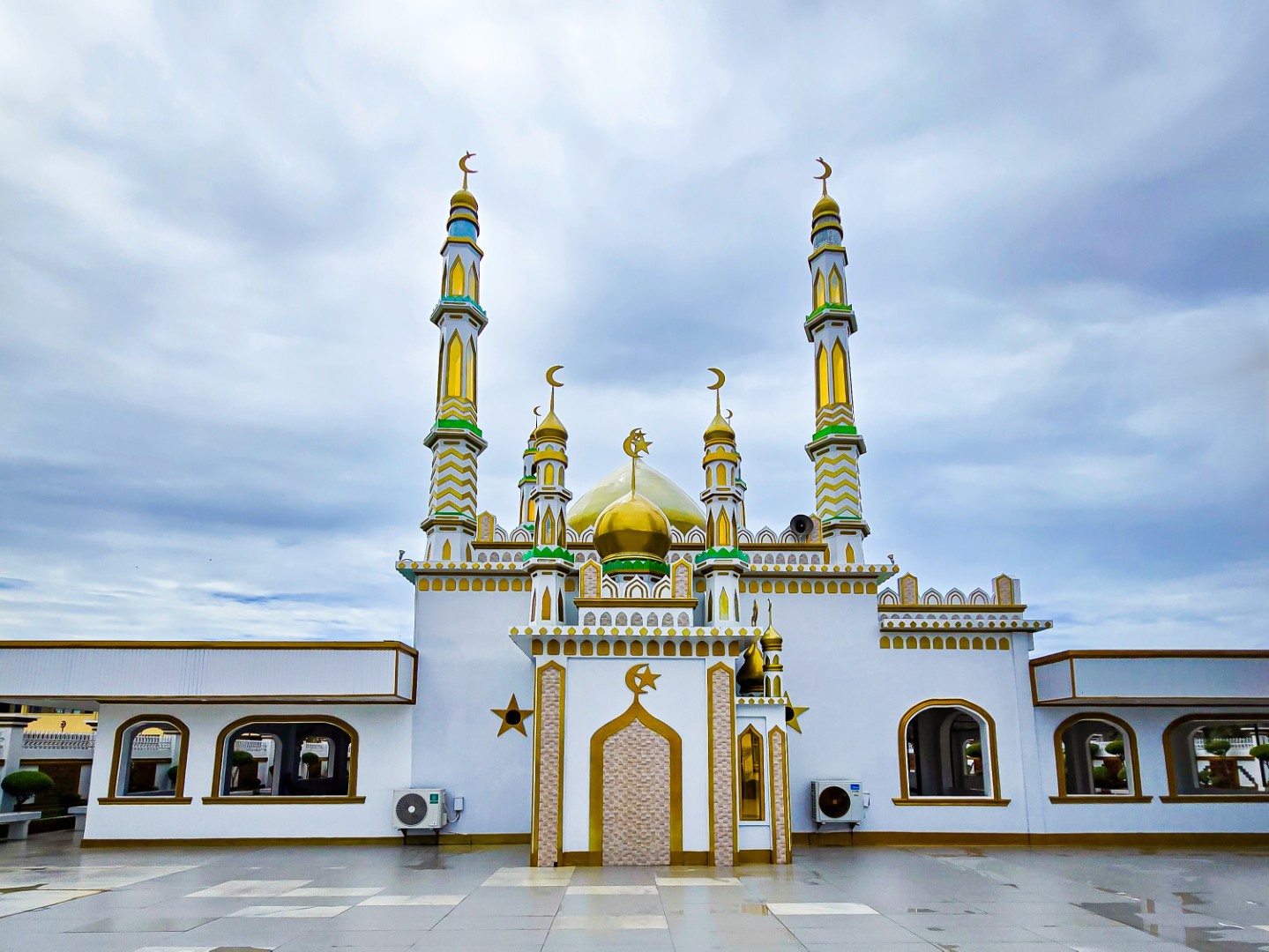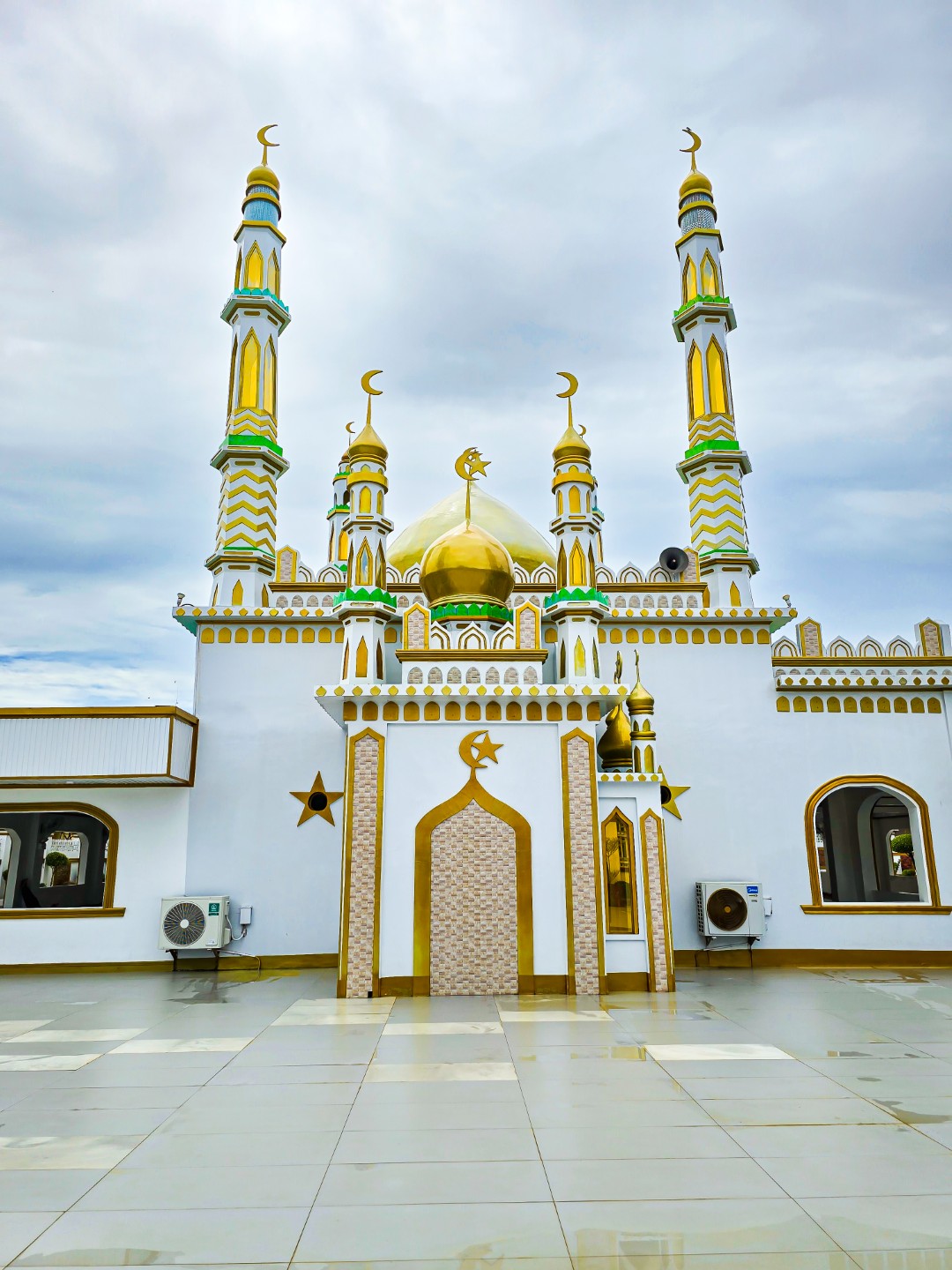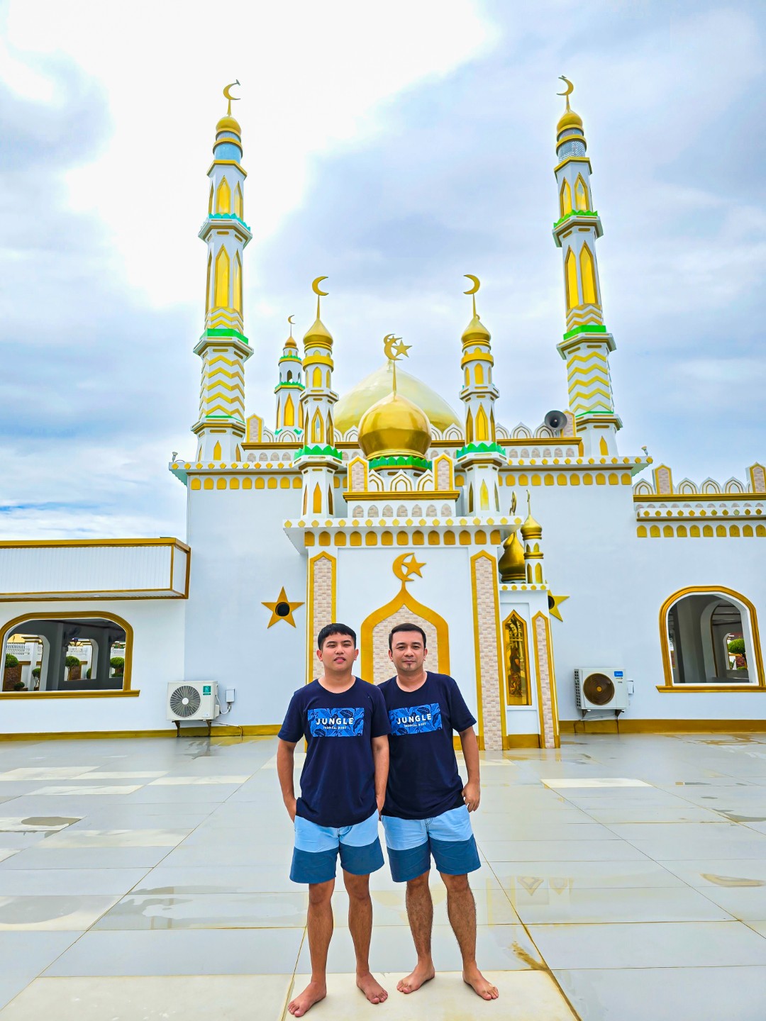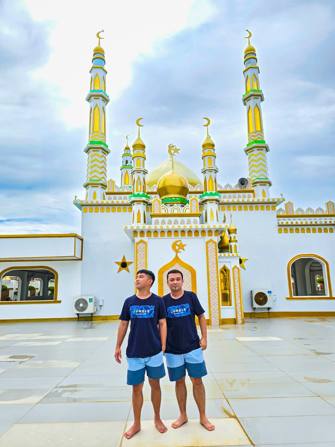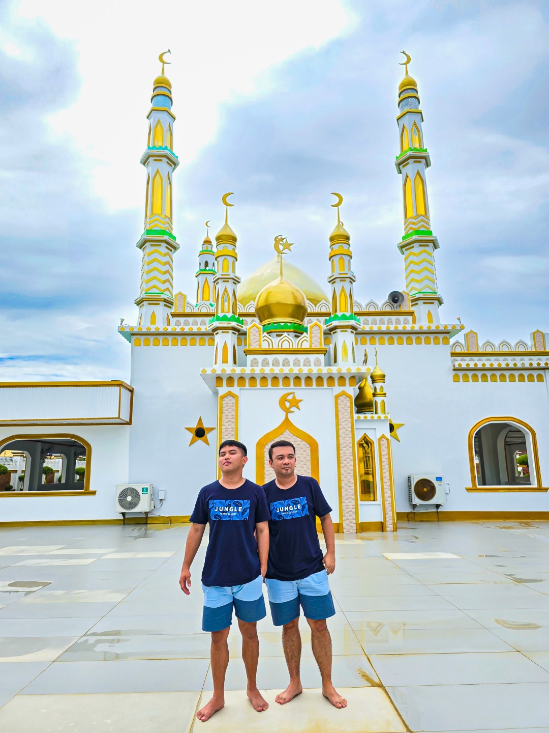 The sun remained elusive when we were at the mosque, and in a way its absence provided a perfect lighting mix and background for picture taking. More than that, the gray skies heavy with clouds stood in perfect contrast to the golden domes and spires, as if a figurative illustration of how worship and prayer works: beautiful in the sight of the Almighty, piercing through the skies, reaching heaven.