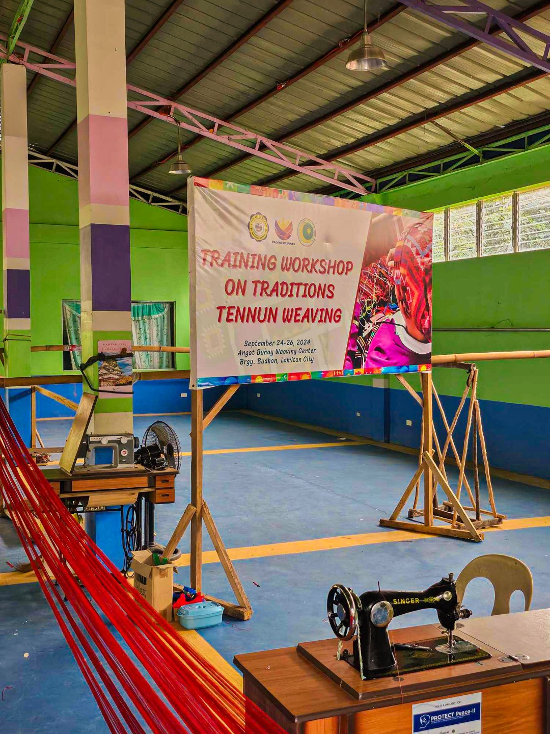 The weaving center is a large covered space where looms have been laid across. It was inaugurated in 2022 with the hopes of providing livelihood to the weavers of Basilan while at the same time providing means by which the heritage of producing the tennun will continue to flourish. It serves a noble dual purpose: livelihood support and cultural preservation.