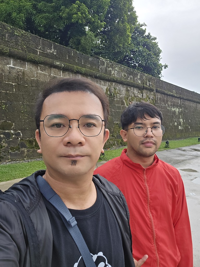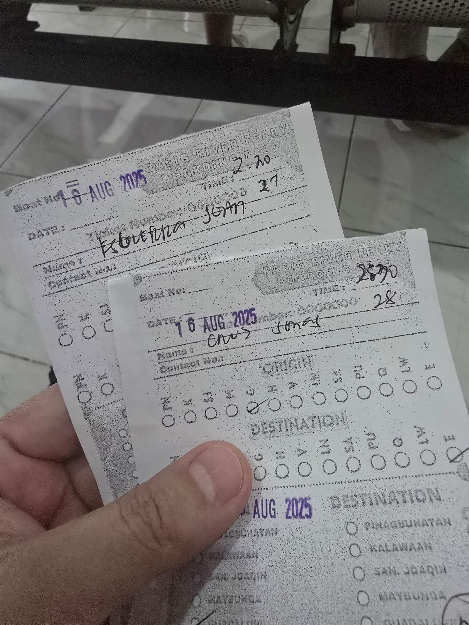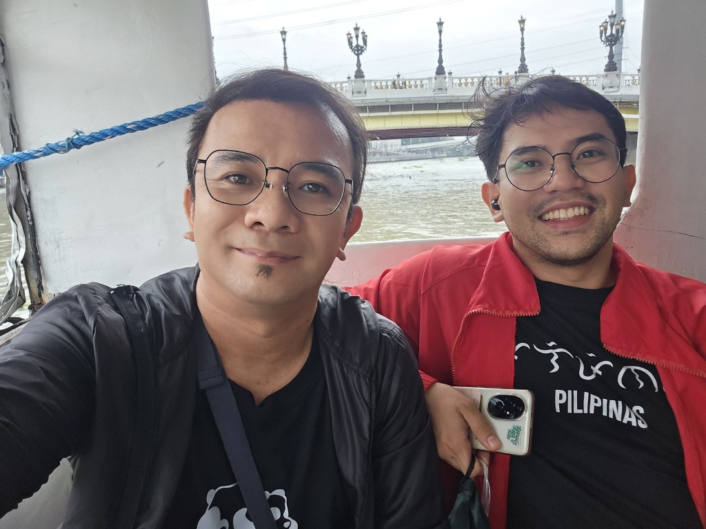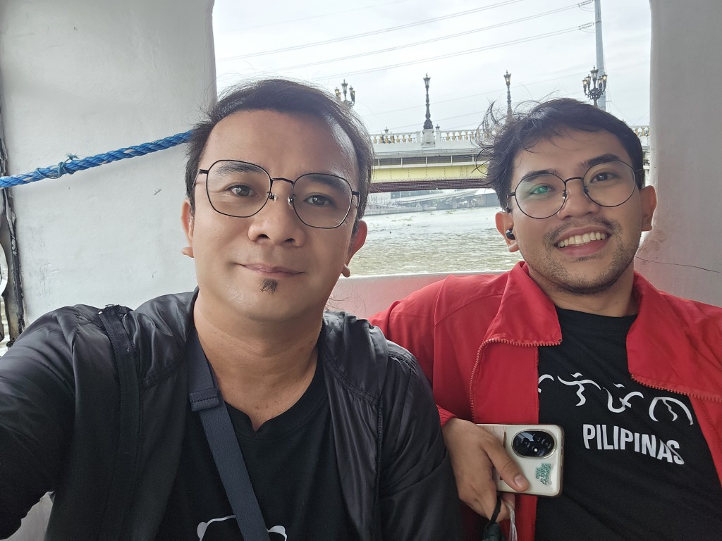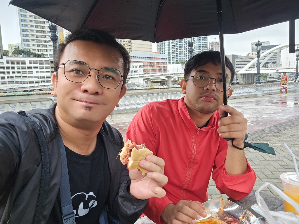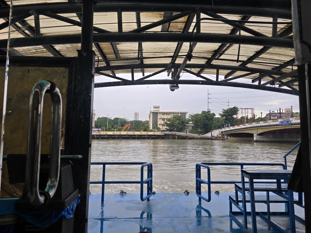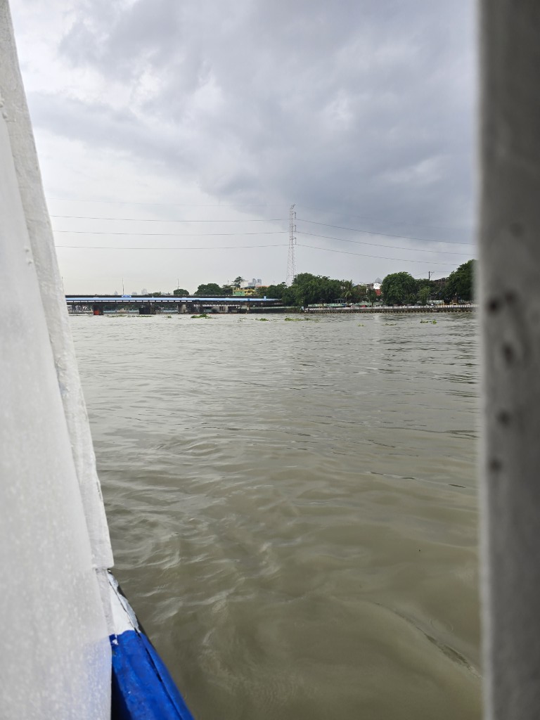 Since we boarded last, we missed the window seats in the ferry. Despite that, there were times that I would sneak my phone in the window behind me, excusing myself from the guy seated at my back. Somehow, I was still able to see whatever there was outside: river, rain and riverside establishments.