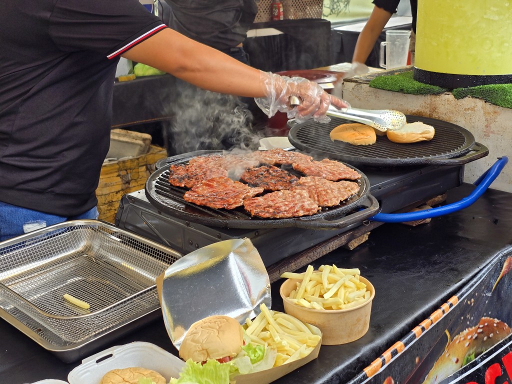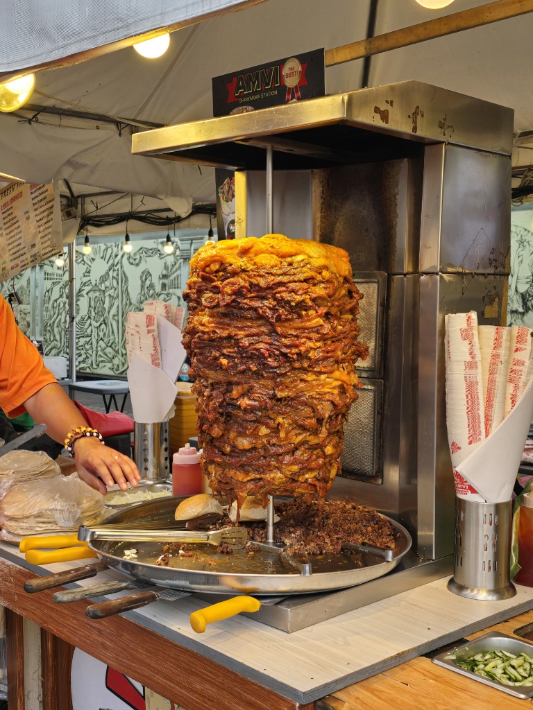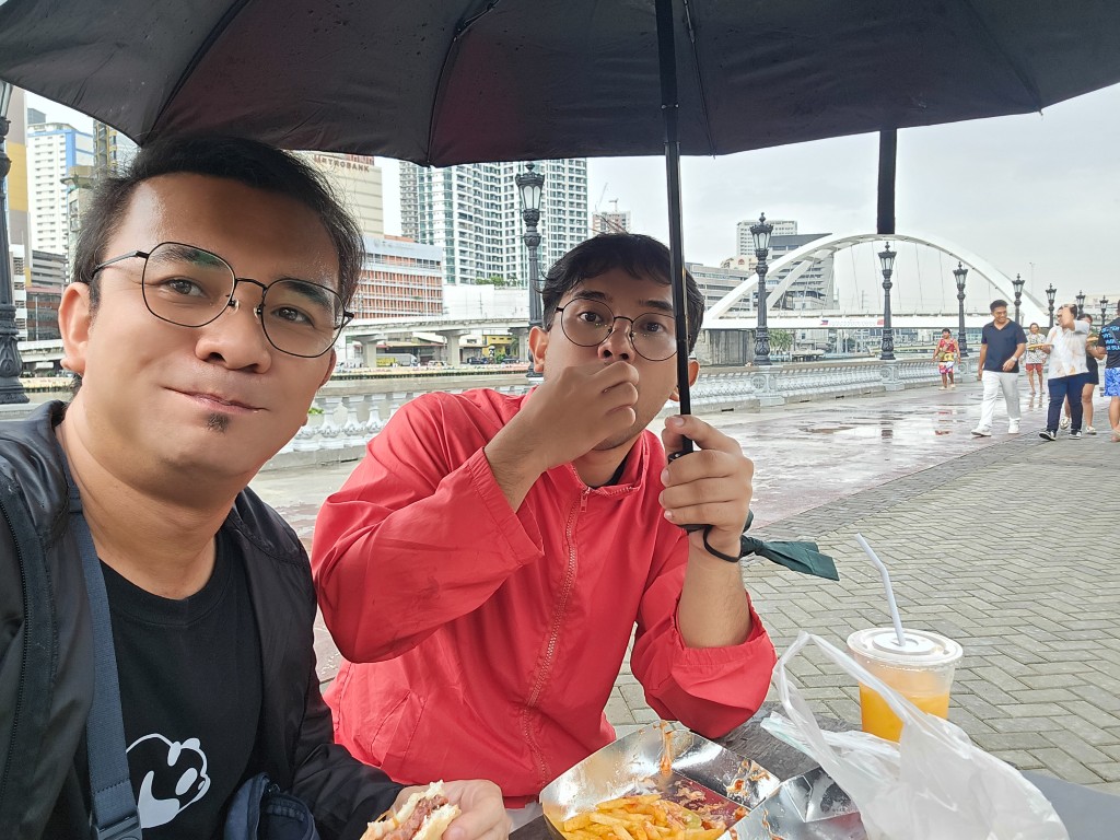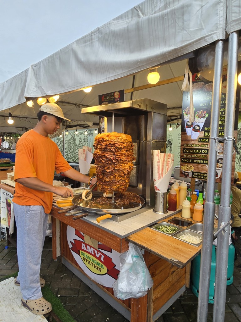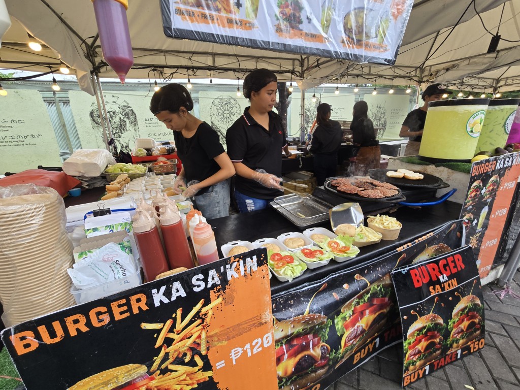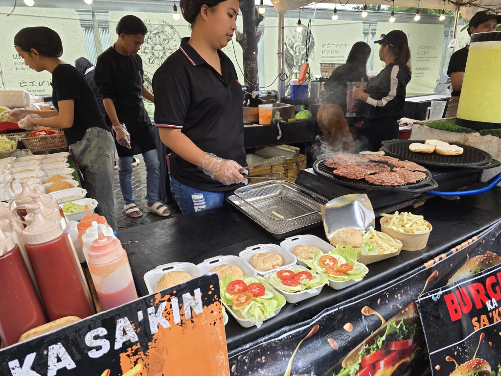 We walked back the stretch of the esplanade when we’ve already reached the end, and stopped at the food stalls in the showcase area. It was still relatively early when we got there as the esplanade comes to life at night. Still, there were a few stalls already open. For some reasons, we ended up doing burger tasting. We ordered burger, fries and drink combo from Burger Ka Sa’kin and shawarma burger from Amvi Shawarma Station.