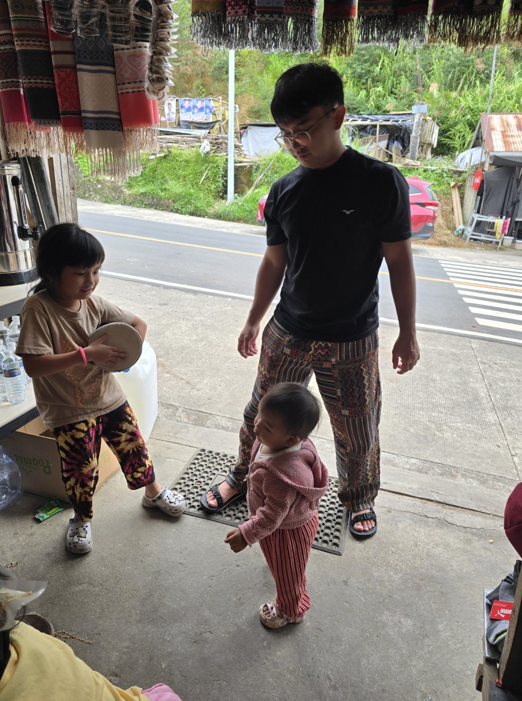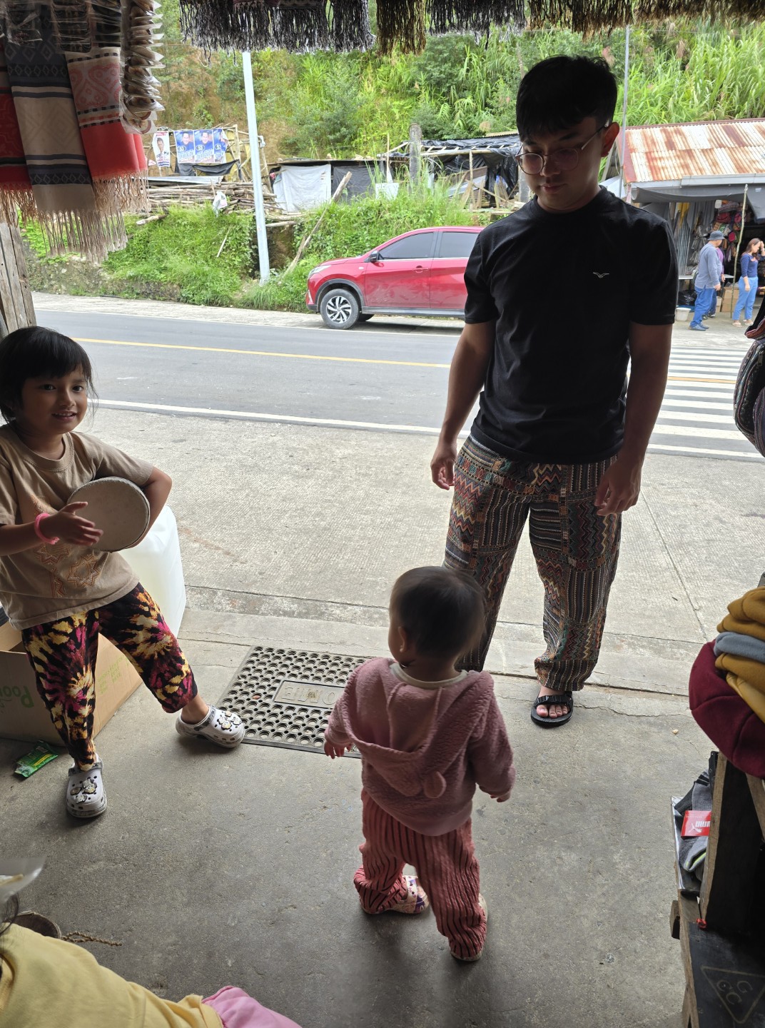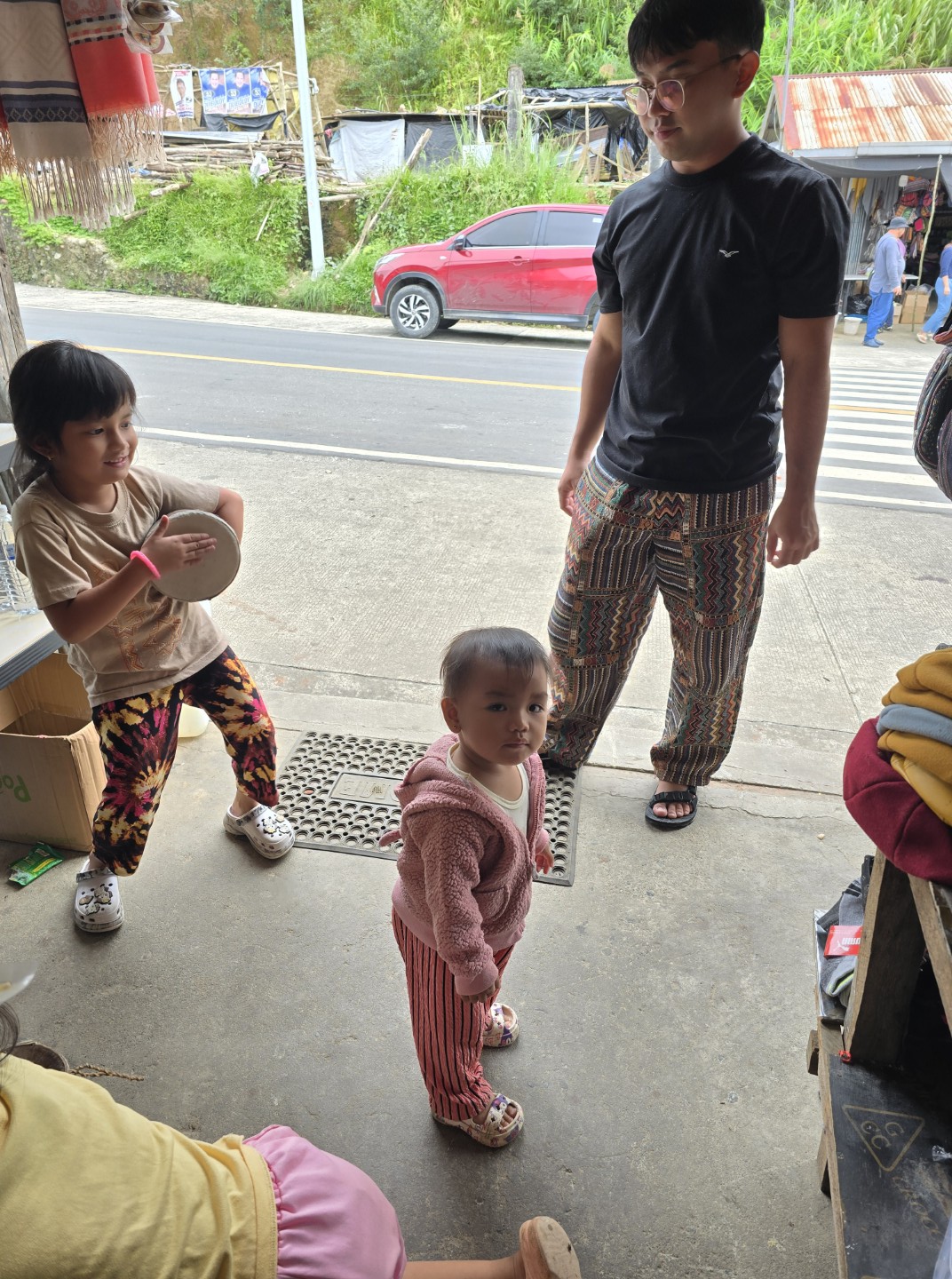 Riyan and Ran playing with the store owner’s daughter.