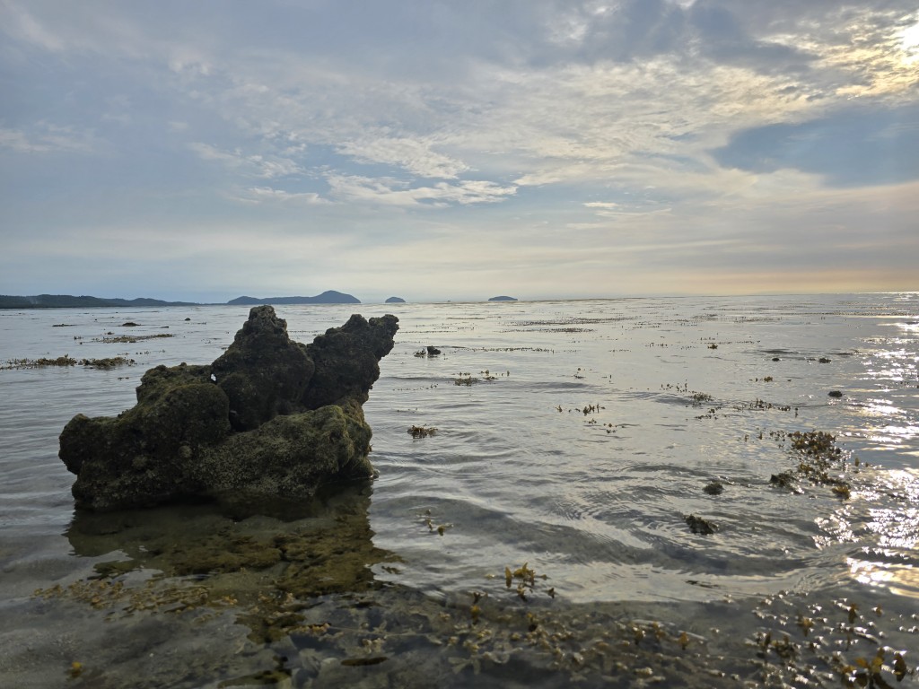 It was clear that the tide has ebbed as the shallows had moved away far from the beach. Most plants and rocks that would be normally beneath the water had surfaced. As the tide was too low, we decided to forego of our initial plan to swim and just settled with wading through the water and sightseeing.